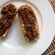 Antes de servir, calentamos a 150° las rebanadas en el horno unos 15 minutos (hasta que el pan empiece a estar crujiente).