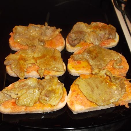 Colocamos sobre las rebanadas la carne.