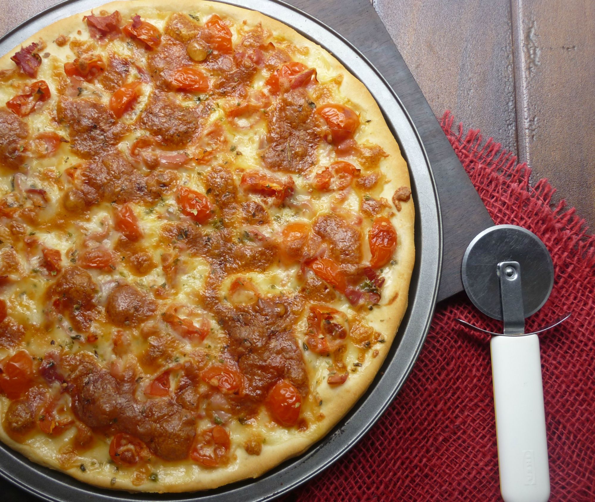 Precalentar el horno a 220° y cocer la pizza unos 15 minutos hasta que esté doradita.