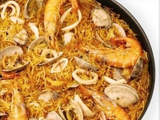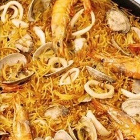 En una sarten a parte añadiremos un poco de aceite y doramos los fideos. Cuando estén los añadiremos al sofrito que tenemos preparado en la paellera, le iremos agregando el caldo de pescado poco a poco, sazonamos y añadimos el azafrán, dejamos cocer durante unos 1o minutos aproximadamente y dejamos reposar 5 minutos, listo para servir.