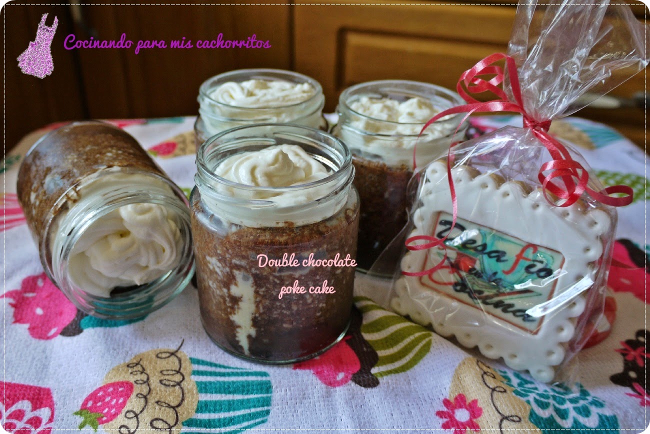 Rellenamos los botes de cristal hasta la mitad (aquí es conveniente que echemos una mano nosotros a los cachorritos para que la masa no termine más fuera que dentro) y metemos en el microondas.