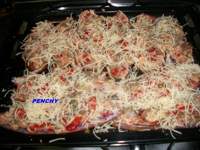 Estas berenjenas son diferentes y rápidas, por ser hechas en microondas, y también los pimientos, pero al final se gratinan al horno, llevan pimiento asado, atún, tapenas, y queso, son muy ricas, las podemos dejar preparadas el dia antes y gratinarlas en el momento de servirlas. En la foto están preparadas para gratinar, pues se me olvidó hacerle la foto final.