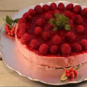Apretamos las hojas de gelatina para que escurran el agua y las disolvemos en un poco de leche caliente y la incorporamos al queso y a las frambuesas. Añadimos también la leche restante. Montamos la nata y también la agregamos a la crema anterior, mezclándola bien.