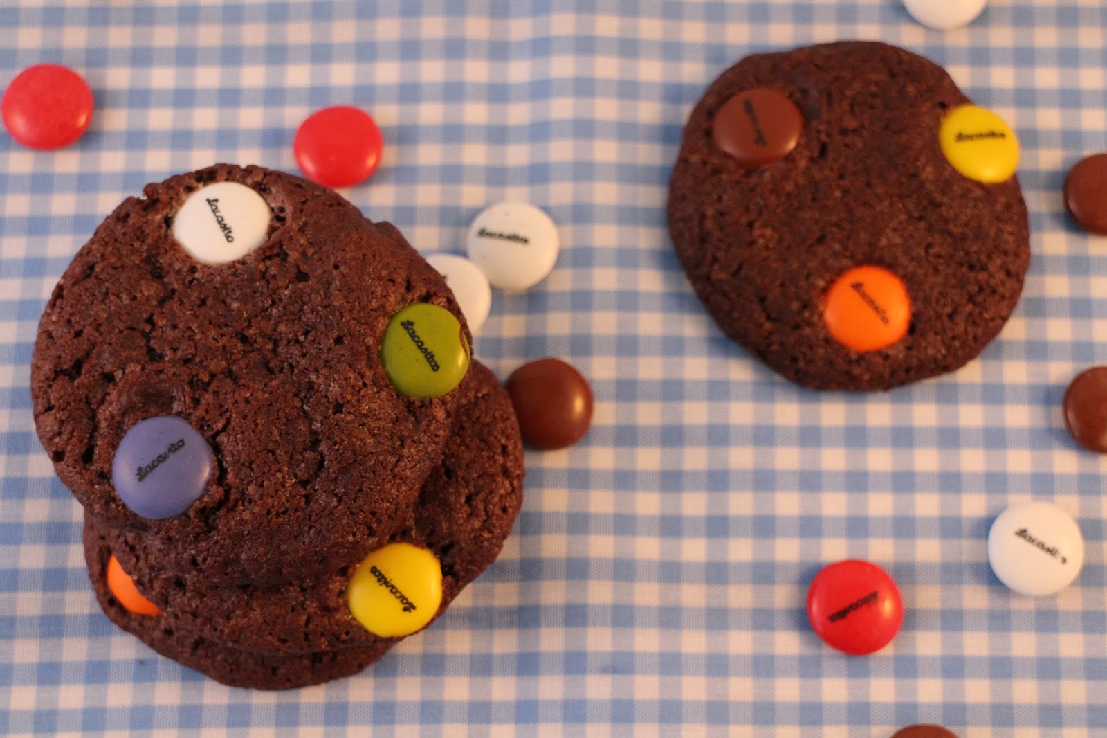 Vamos formando bolitas un poquito más pequeñas del tamaño de una nuez y las vamos colocando en la bandeja con una separación entre sí de 5 cm. aproximadamente. Aplastamos un poquito con el dedo cada bolita y colocamos los Lacasitos encima.