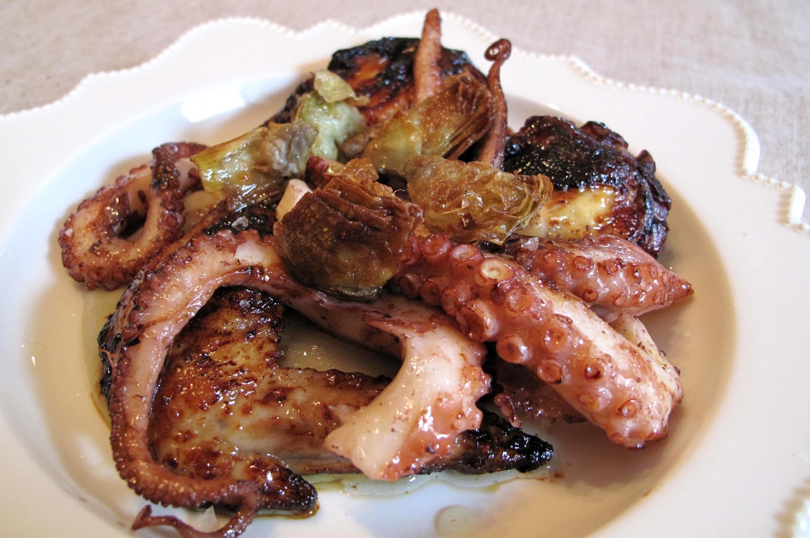 Alitas de pollo con pulpo y alcachofas