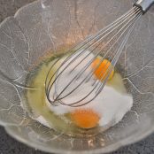 Se baten los huevos con el azúcar hasta que blanqueen.