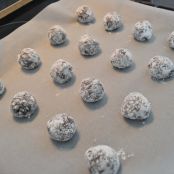 Sacamos la masa de la nevera y vamos formando bolitas con ella, que después pasamos por azúcar glass.