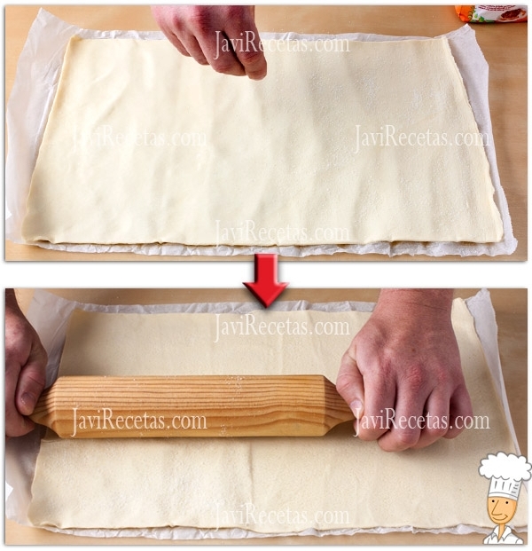 Más azúcar y de nuevo el rodillo sobre el hojaldre.