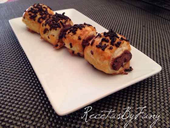 Cerramos por un lado y por el otro el hojaldre, hasta tapar la nutella.