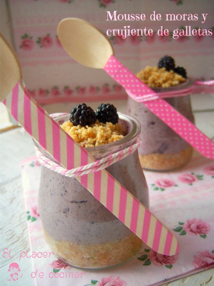 MOUSSE DE MORAS Y CRUJIENTE DE GALLETAS {RETO ¡QUÉ RICO, MAMI!}