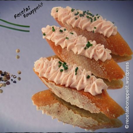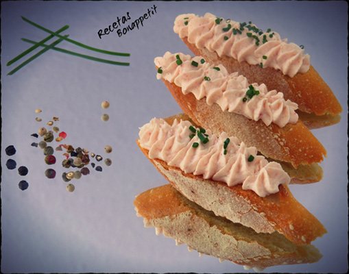 Tostamos unas rebanadas de pan en el horno o en una sartén y untamos el paté sobre ellos. Terminamos colocando por encima cebollino picado.