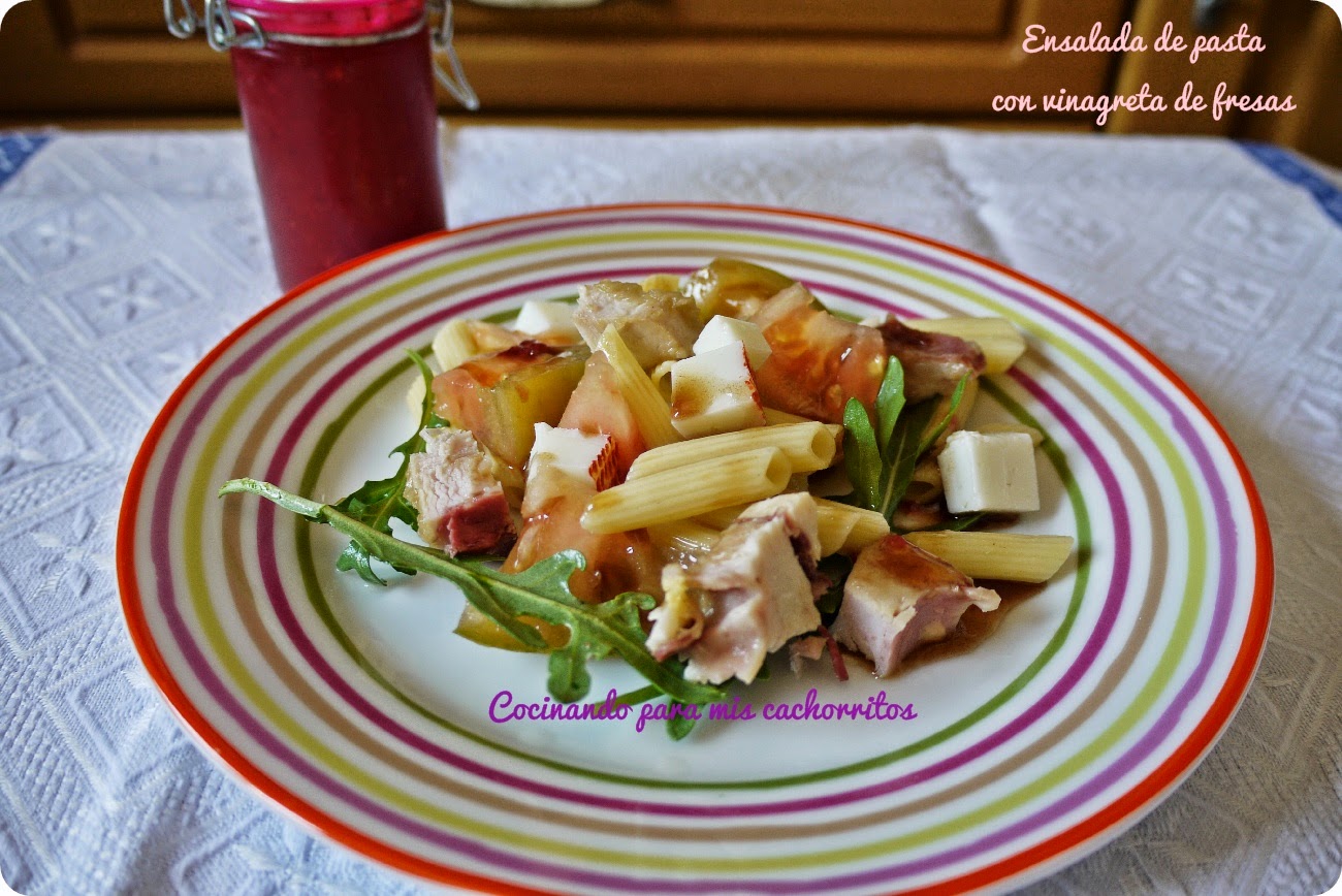 Ensalada de pasta con vinagreta de fresa