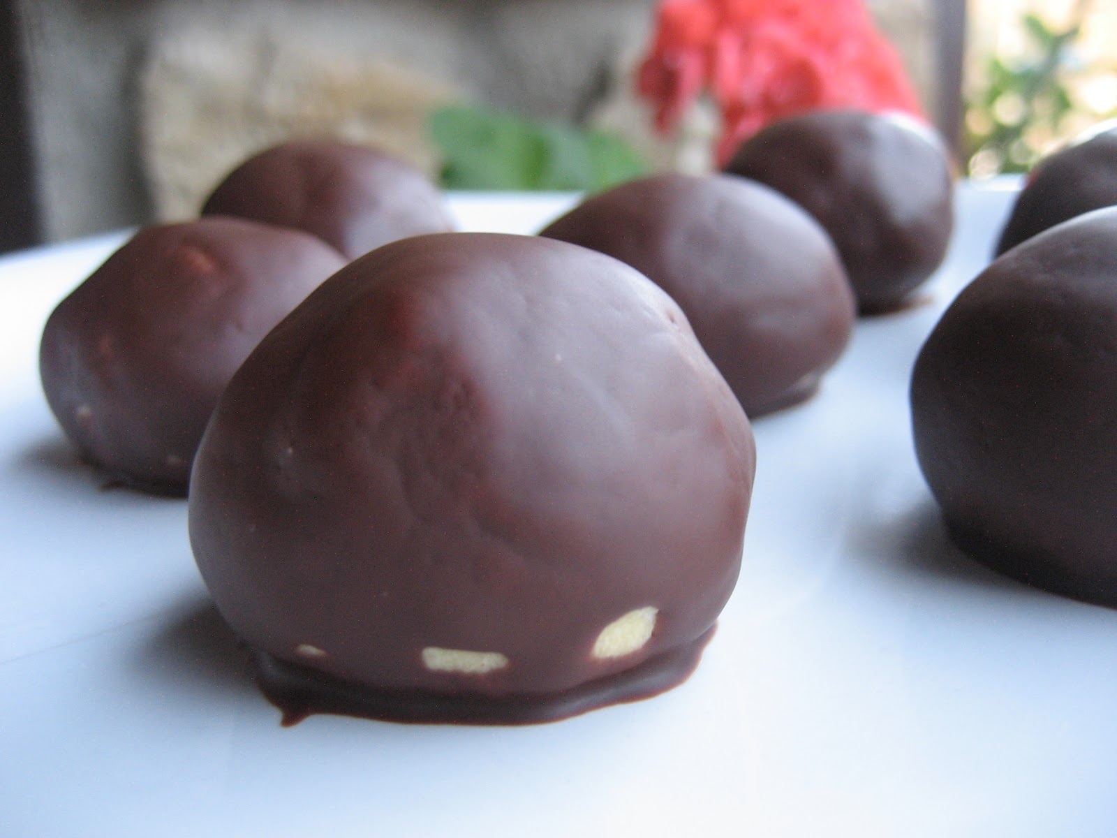 Mientras se enfrían sobre una rejilla, preparamos el chocolate para la cobertura, derretiéndolo con la mantequilla al baño maria. Entonces, ayudándonos con dos cucharitas y con mucha delicadeza, vamos bañando los morenitos en el chocolate, los escurrimos y los colocamos sobre una bandeja con papel de aluminio.