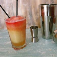 En una cocktelera mezclamos los siguientes ingredientes: ron malibú,Absenta, y vive soy chocolate, cerramos y agitamos hasta obtener un poco de espuma.