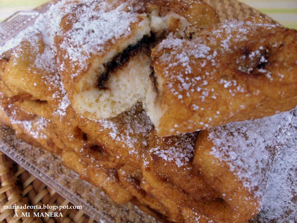 - Empapar (no mucho) la rebanada con leche, en un plato.