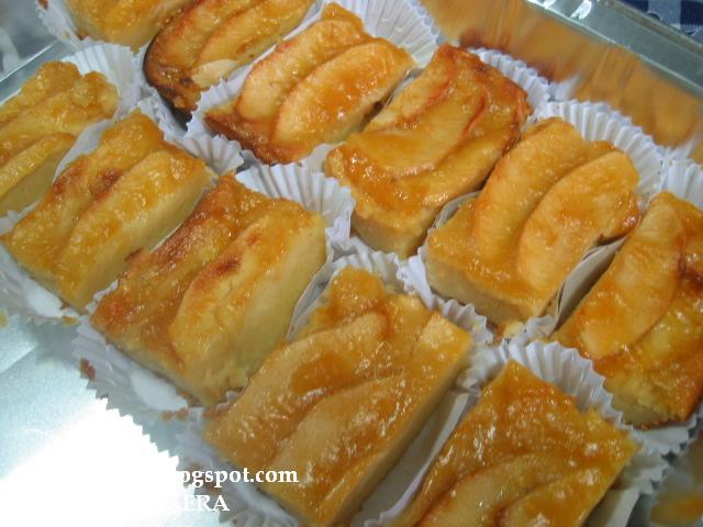 - Se vierte la mezcla en una fuente forrada de papel de aluminio o en una fuente antiadherente (yo he utilizado un recipiente de cristal de pyrex) y se cubre con las manzanas reservadas cortadas en rodajas finitas.