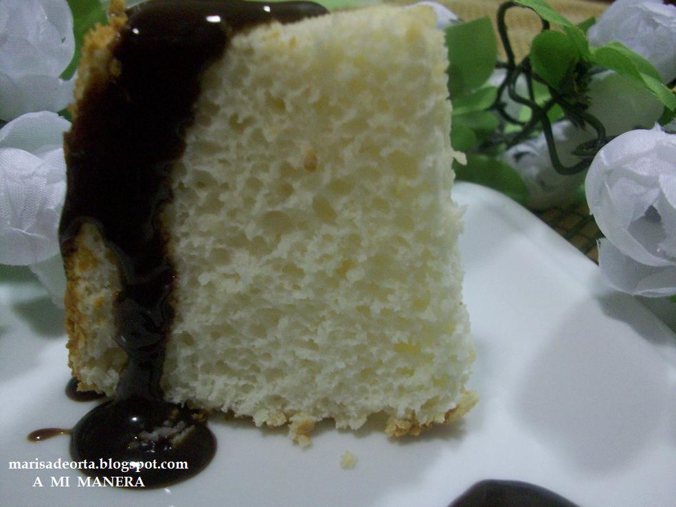 - El Angel Food Cake necesita enfriar boca abajo, así que tan pronto saquemos el molde del horno, le debemos de dar la vuelta colocado sobre sus patitas. Las proteínas del huevo que le dan al cake su altura se endurecerán cuando enfrien. Si no le damos la vuelta desinflarían el cake.