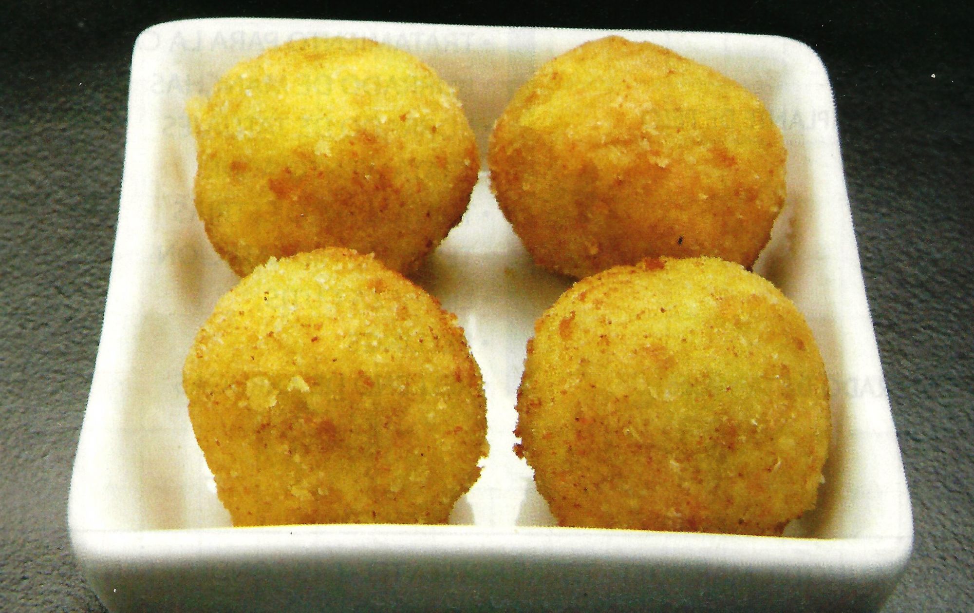 4. En un sartén caliente el aceite a fuego medio, agregue las bolitas y saltee hasta dorar, por todos lados. Retire las bolitas y estile sobre papel absorbente.
