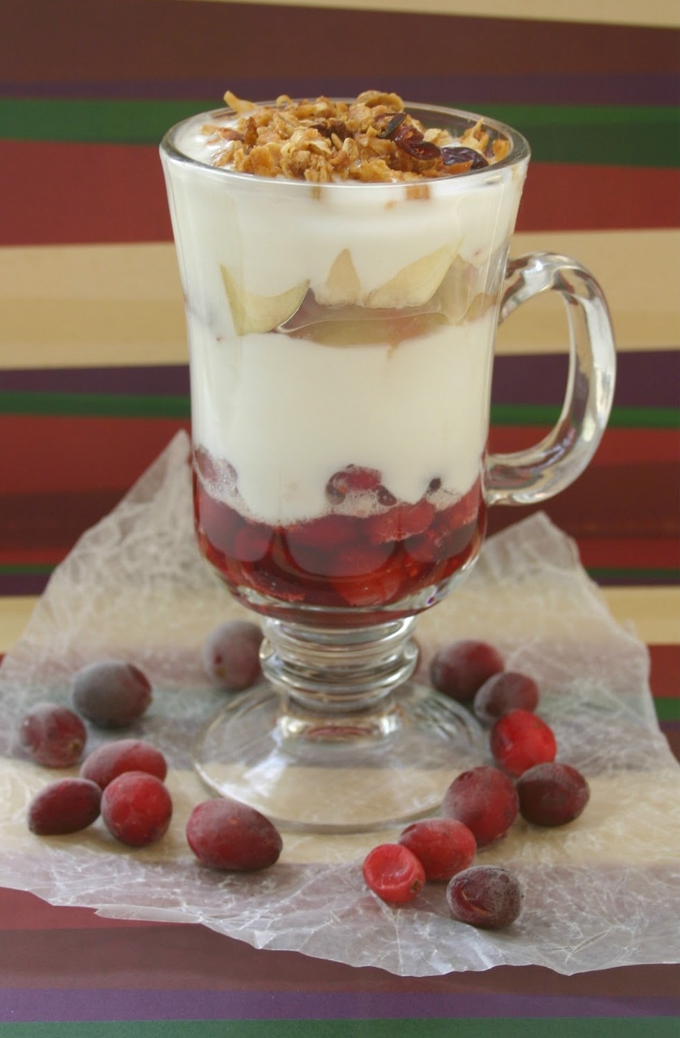3. En vasos individuales distribuya por capas la mezcla de frutas, yogurt y mezcla de cereales. Sirva de inmediato.
