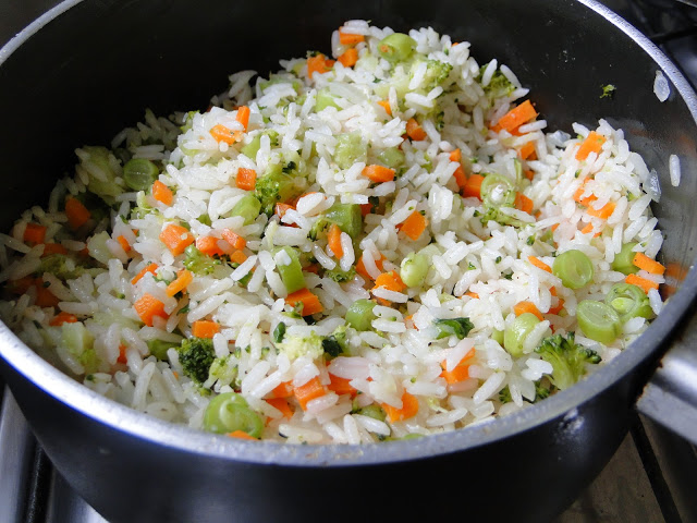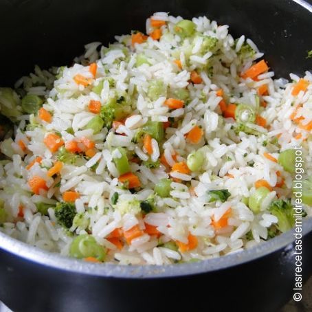 2. Agregar el agua o el caldo de verduras y cocinar por 20 minutos o hasta que el arroz este en su punto.
