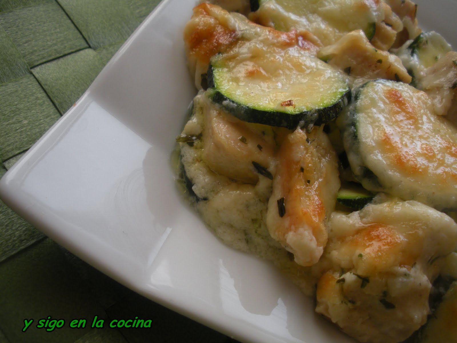Cuando el calabacín este en su punto echaremos el queso que se fundirá con el calor del calabacín entonces echaremos trocitos de nueces encima, esta riquísimo es muy vistoso el plato y se debe tomar recién hecho muy caliente.