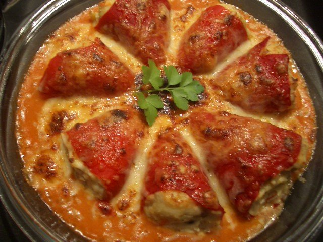 Pimientos rellenos con frutos del mar