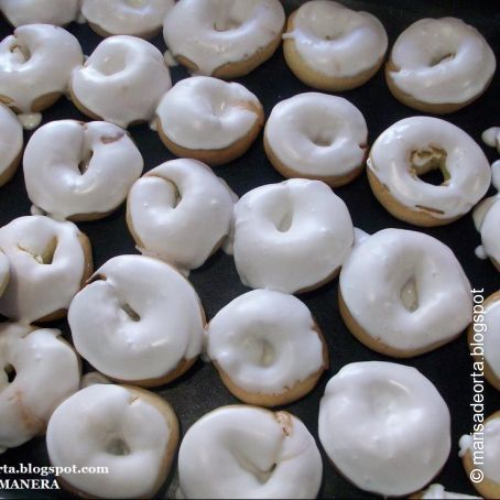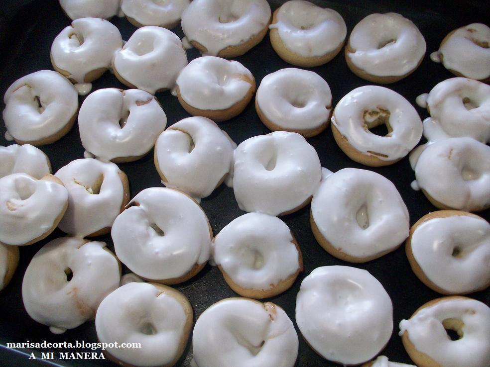 - Por último mojar en el merengue o la glasa la parte de arriba de las rosquillas.