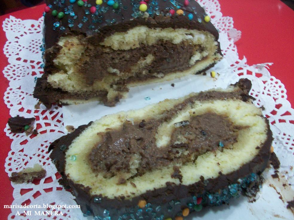 - Enrollar con cuidado, ayudándonos con el papel con el que horneamos la plancha de bizcocho. Envolver con este mismo papel y dejar reposar dos horas. (Mejor hacerlo de un día para otro)