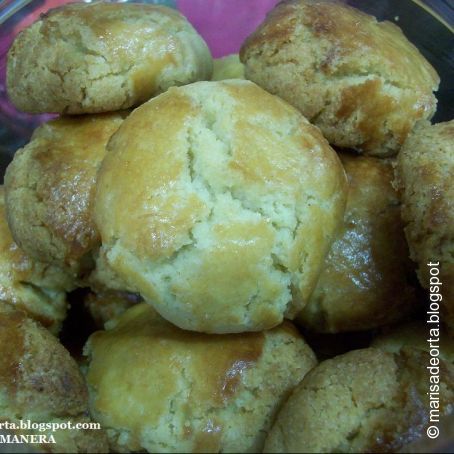 - La masa queda como grumosa, no es compacta, así que hay que coger pequeñas porciones, presionarlas con la mano y formar bolas del tamaño de una nuez y colocarlas en la bandeja del horno forrada con spilat o papel vegetal.