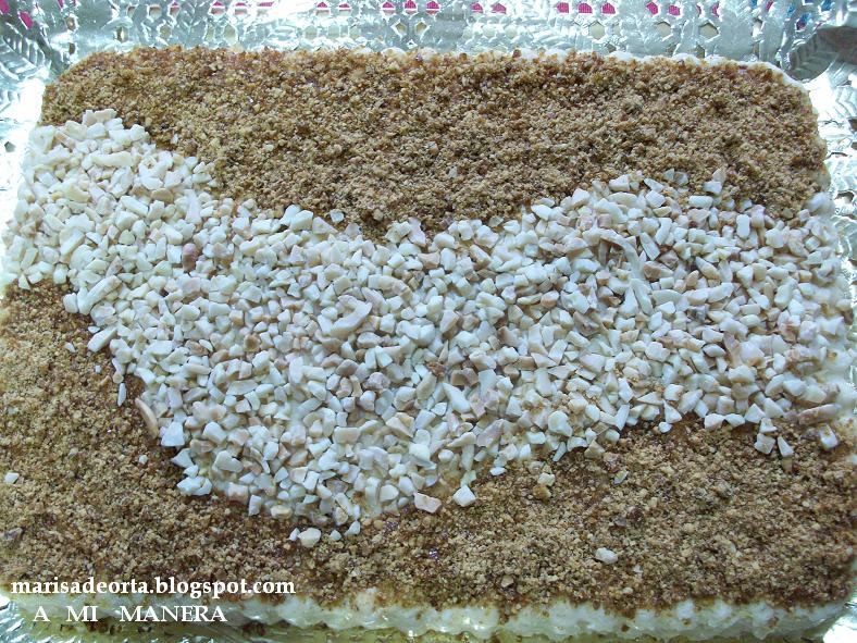 - Desmenuzar el turrón a cachitos pequeños y reservar (yo lo he ido cortando con unas tijeras)