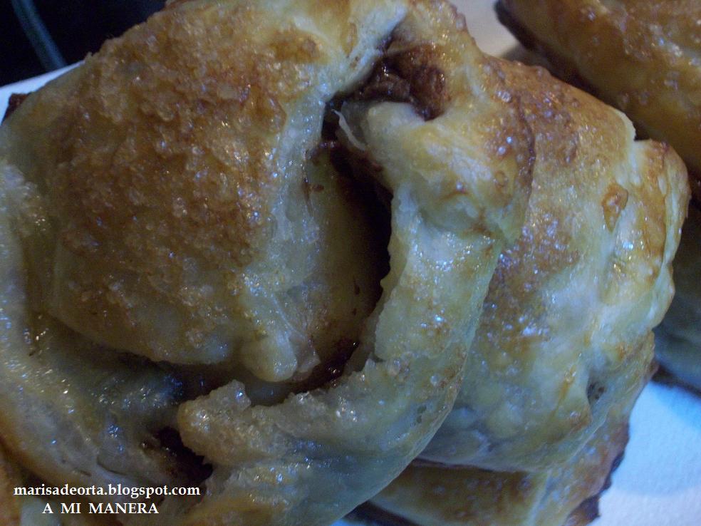 - Colocar encima una cucharadita de nocilla y sobre ella un trocito de pera.