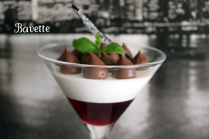 Ponemos la otra hoja de gelatina en agua. ponemos la nata en un cazo junto con el azúcar y las ramas de canela, hervimos al fuego y dejamos la canela un ratito para tomar sabor, pasamos la mezcla por un colador y le añadimos la gelatina escurrida, mezclamos bien hasta que se deshaga y rellenamos las cuatro copas, dejamos enfriar en la nevera y decoramos con las frambuesas, menta fresca.