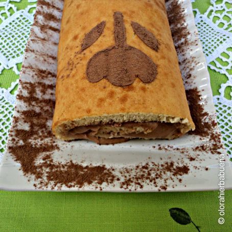 - Ponemos el relleno de crema, yo lo hice poniéndola en una manga pastelera para que me fuera más fácil, extendemos bien por toda la superficie, enrollamos nuevamente.