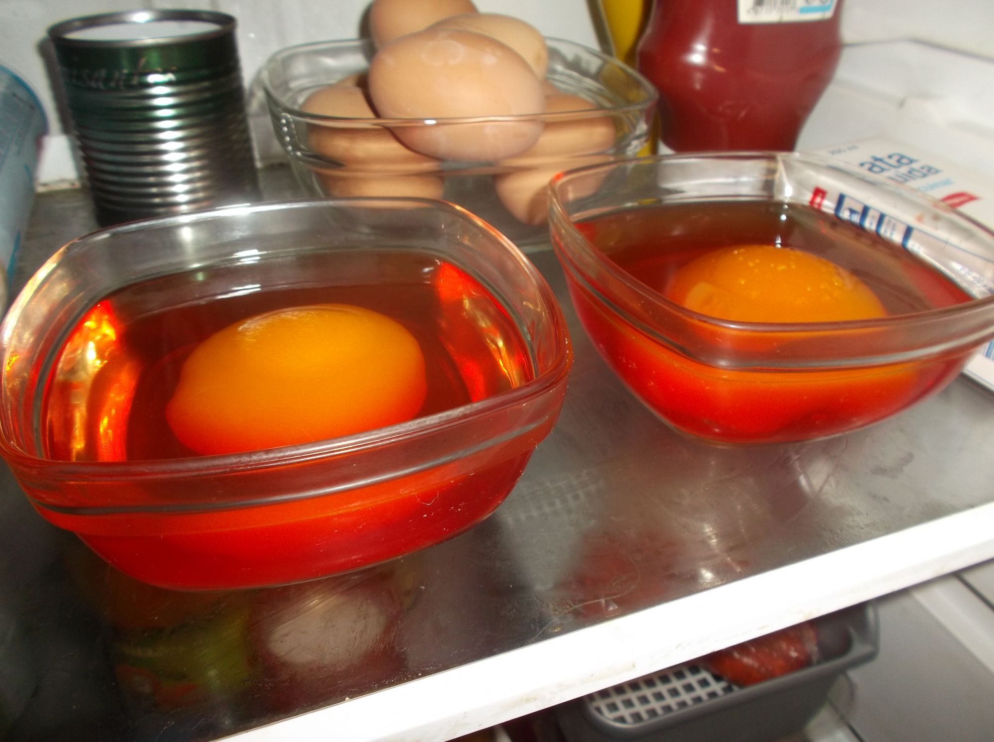Una vez preparadas las dos gelatinas colocamos en 4 recipientes las 4 mitades de melocotón.