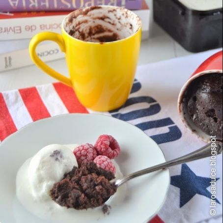 Un brownie jugoso y nada empalagoso. Templado está buenísimo, pero al día siguiente está también muy bueno, algo sorprendente teniendo en cuenta que está hecho al microondas.