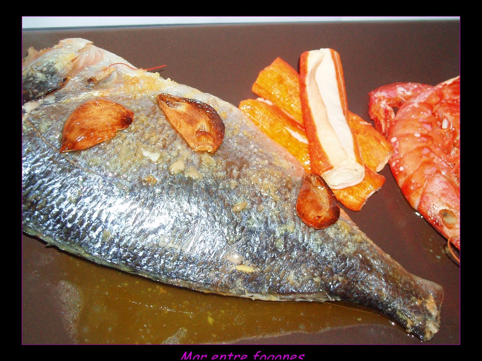 Cuando el ajo esta dorado echamos por encima del pescado.