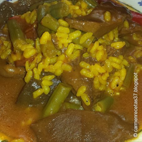 Cuando ha hervido unos 15min le ponemos el arroz y a medio hacer bajamos el fuego hasta que este listo.