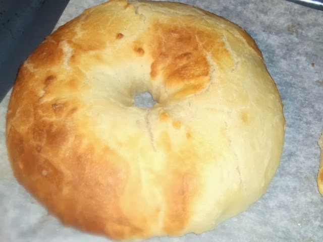 cuando han pasado los 15min de reposo de los bagels los echamos al agua durante