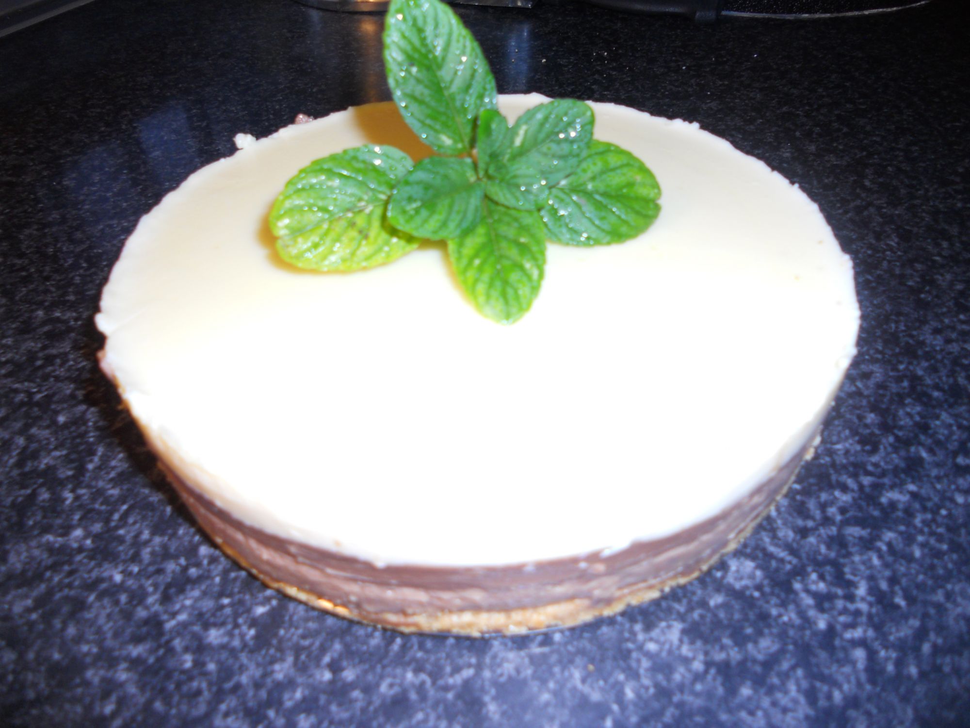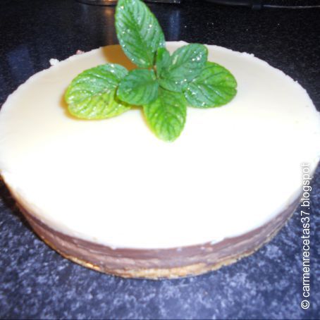 En un cazo ponemos 250grs de leche, antes habremos apartado un poco para disolver el sobre de cuajada , cuando empieza a calentarse ponemos el chocolate para ir deshaciéndolo, cuando esta desecho le ponemos 250grs de nata y cuando rompe a hervir ponemos el sobre de cuajada que hemos disuelto antes en un poco de leche y 50grs de azúcar, cuando vuelve a hervir lo apagamos y lo vertemos encima de la base que tenemos en el molde.