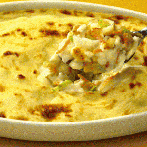 5. Poner la mezcla en un molde untado con Mantequilla y cocerlo en el horno al baño María durante 45 minutos a 190°. Sacarlo del molde y servirlo recubierto de la salsa Bechamel .