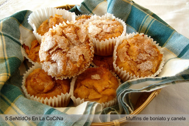 Rellenamos los moldes de las magdalenas 3/4 partes y espolvoreamos con una mezcla de azúcar y canela por encima.