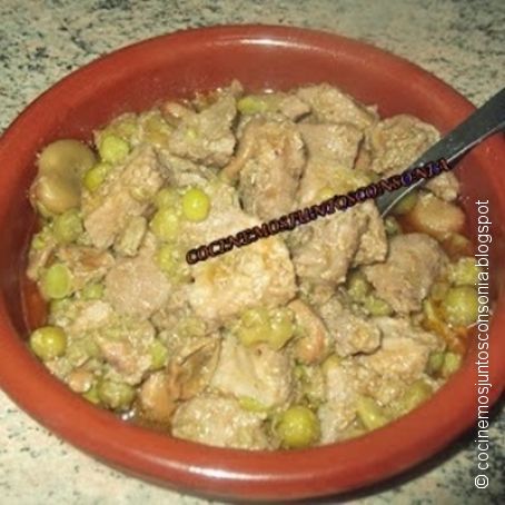 Carne con guisantes y habitas