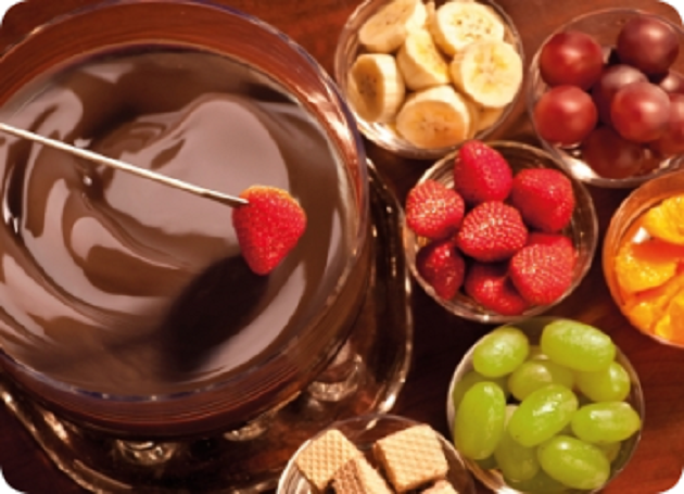 Servirla con fruta cortada y ensartada en unos pinchos de madera.