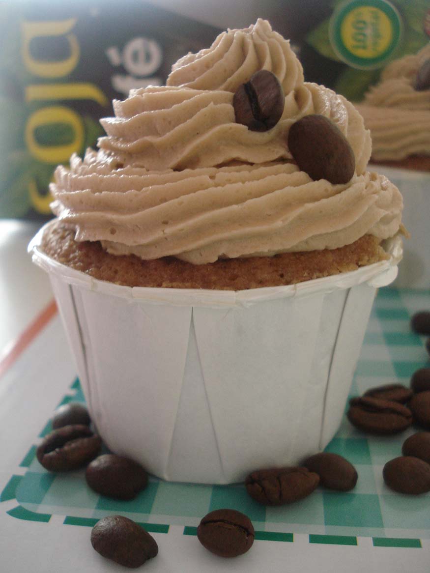 Preparar una manga pastelera con una boquilla rizada y rellenar con esta crema, formando un remolino sobre cada cupcake.