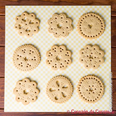 Es importante que la masa esté en su punto exacto cuando vayamos a taladrar las galletas ya que si está blanda las galletas se deformarán en el horneado y si están demasiado duras, se romperán.
