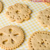 Te recomiendo que cuando cortes las galletas después de sacar la masa de la nevera, las pases directamente a la bandeja donde vayas a hornearlas y trabajes ahí sobre ellas, para no manipularlas demasiado y que conserven así su bonita forma.
