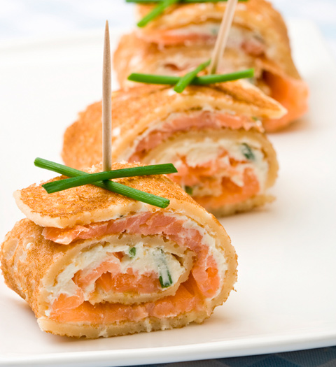 Una vez listo, solo nos toca enrollar los rollitos y sujetarlos con la ayuda de un palillo. Decoramos con cebollino.
