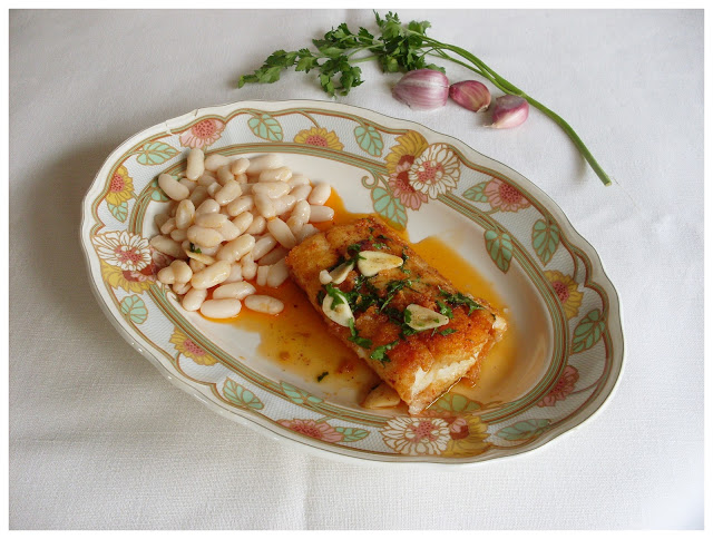 Acompañado de unas judias blancas cocidas y salteadas en un poco de aceite, lo redondeáis.