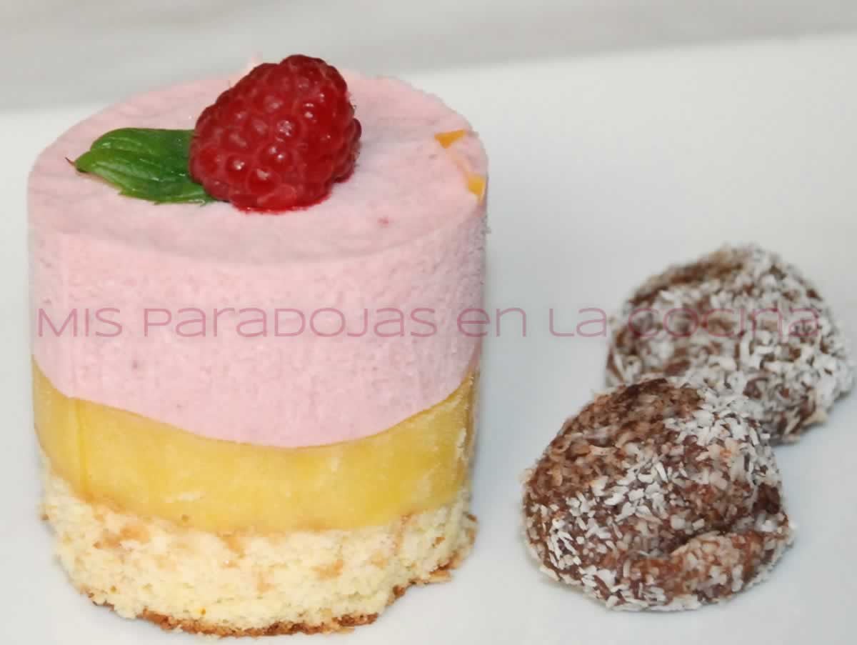Mousse de fresas con gelée de mango (bizcocho, gelée y mousse)