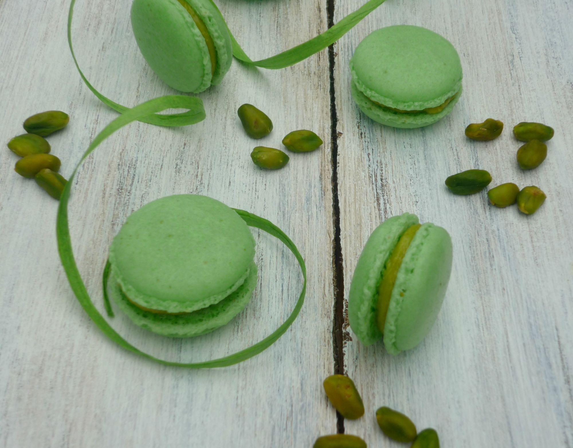 Batimos las claras, cuando empiecen a espumar añadimos el azucar y seguimos batiendo hasta que estén a punto de nieve, con pico duro, que no caigan al darle la vuelta al bol. Cuando casi estén añadir la pizca de colorante y la cucharadita de pasta de pistacho.